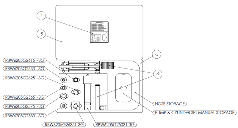This kit contains parts RBW6205G25031-3G RBW6205G25331-3G RBW6205G25651-3G RBW6205G25751-3G RBW6205G25831-3G RBW6205G26151-3G RBW6205G26251-3G RBW6205G26351-3G +Pump Cylinder Set